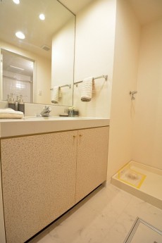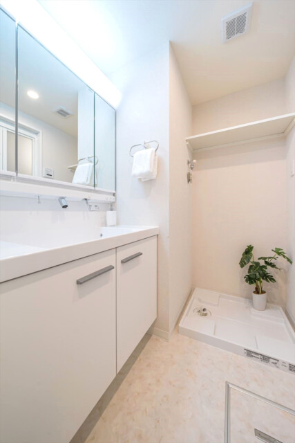 【洗面室:三面鏡付き洗面台・洗濯機スペース】