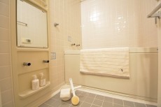 やわらかい雰囲気のバスルーム。追い焚き機能完備なのでいつでも温かいお風呂に入れます。