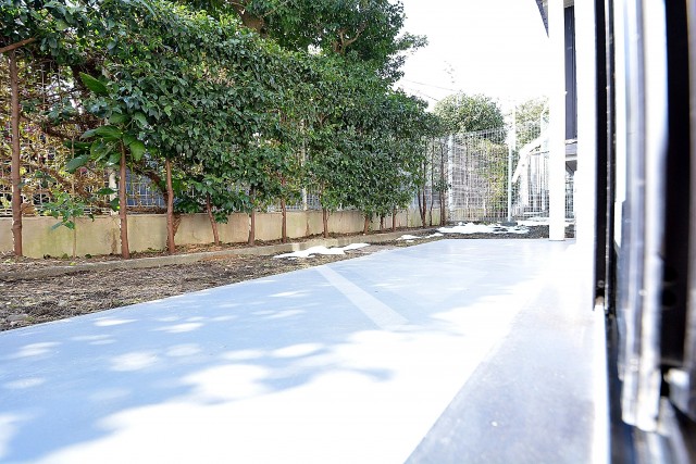 1Fなので、外からの視線が気になるかな・・・と思いましたが、植栽が目隠しの役割をはたしています。