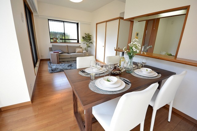 家具が置いてあるので実際の生活イメージもつきやすいのではないでしょうか。(家具付きでの販売になりますので、置いてある家具はいただけます。)