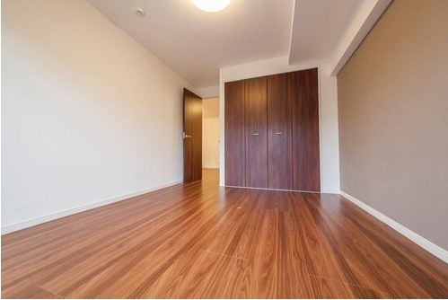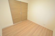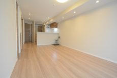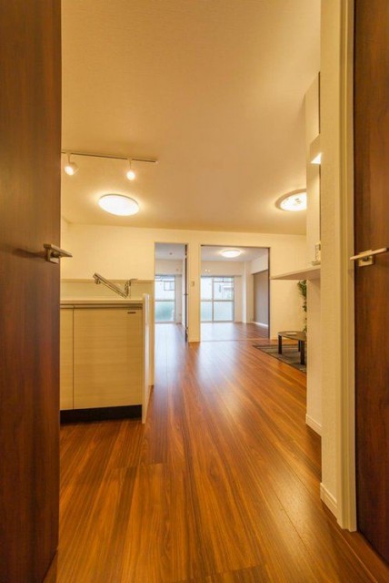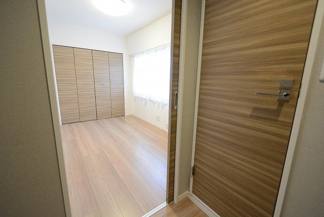 キッチンから見てリビングダイニングキッチンの奥、左側のドアは5.8帖の洋室です。 北東側に奥行きたっぷりの大き目クローゼットが付いているので、主寝室にいかがでしょう?