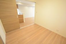隣りは6.0帖の洋室です。スライドドアで大きく開いて、キッチンからでも中が良く見えるので、お子様のいらっしゃるご家庭は子供部屋としてお使いになってはいかがでしょ?