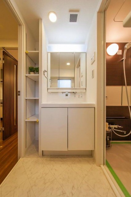 洗面室は脱衣所も兼ねているので、脱いだお洋服はすぐに洗濯することが出来ますよ。洗濯カゴを置かなくても良いので見た目もスッキリしそうです。