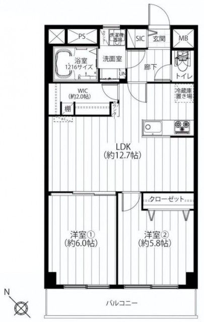 ここで間取りの紹介です。 56.43㎡ 2LDK+WIC 7月上旬に内装リノベーション工事を終えたばかりのお部屋です!!