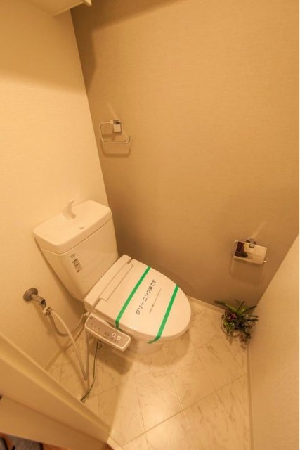 玄関から廊下に上がって、すぐ左にウォシュレット付トイレがあります。 上部に吊り棚があるので、収納もしっかりできますよ~☆