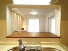 窓側からもご覧ください。キッチンは一部だけリビングが見えるように開いている部分があります。
