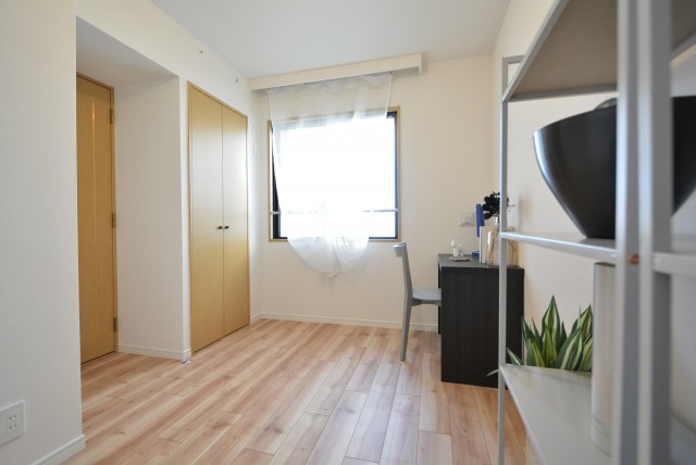 洗面室の向かい側は約7.0帖の洋室。シングルベッドが2台並べて置ける広さがあります。収納に幅の広いクローゼットも設けられています。