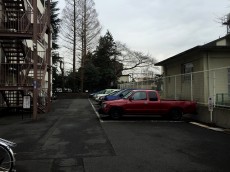 ゆとりのあるマンションの敷地。残念ながら現在空無しですが、駐車場も有ります。