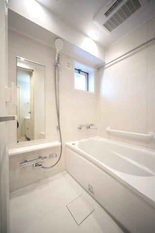北向きなので陽が射し込むわけではありませんが、自然光が入るのは何だかテンションが上がります。一階なので窓にはしっかり面格子が設置されていますよ。雨が続く季節に嬉しい浴室換気乾燥機付き!