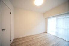 LDKと同じ南向きバルコニーに面したお部屋です。柱などの凸凹がなくきれいな形なので無駄なくスペースを使えそうですね。収納はウォークインクローゼット!!!両側にハンガーパイプが設置された大きな収納です。衣類を掛けるだけでなく、シーズンオフの家電やスーツケースなど出し入れすることの少ないかさばる物を入れておくのにも便利です。