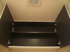 右手にある棚は可動棚です。細々したものでもボックスなどを活用しいろいろと収納できそうです!奥行きもしっかりとありました。