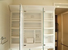 ノーリツ製洗面化粧台です。大きなミラーをあけますと整理整頓しやすいキャビネット!