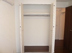 入ってすぐ右側の引戸を開けると、2本のハンガーパイプが付いたクローゼットがありました!