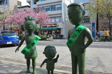 駅の各出口まわりではサザエさん一家がお出迎えしてくれます。