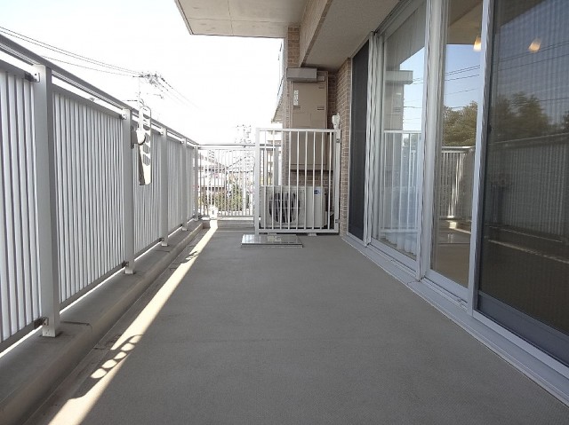 最後にバルコニーに出てみます。約13㎡、西向き。まだお昼少し前なので陽ざしが少しですが、午後は西日が差し込むのではないでしょうか。