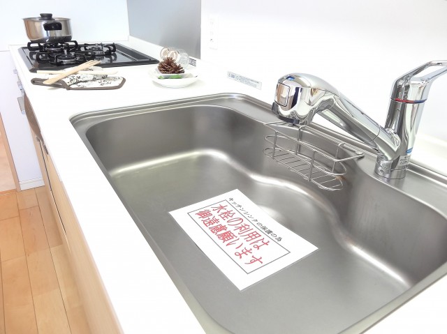 フローリングにマッチした木目柄のシステムキッチン。ワークトップもゆとりがあるのでレシピを見ながら新しいお料理に挑戦・・・なんてこともできちゃいます。 キッチンに立つのが楽しみになりそうです。