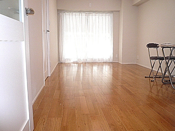 明るめのフローリングが張られたナチュラルな雰囲気のお部屋です。南東向きのバルコニーに向かってキッチン、ダイニング、リビングと並べて使うオーソドックスなタイプなので、家具のレイアウトに悩むことはありません。一方、色やテイストに関しては内装がシンプルな分選択の幅も広く、自分好みのお部屋を創る楽しみがありそうです♬