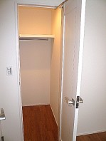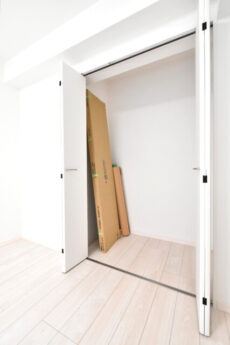 6.5帖のバルコニーに面している洋室です。奥行きのあるたっぷりしまえる大型なクローゼットには収納ケースなどをうまく使ったりすると使い勝手良さそうです!スーツケースもスッポリしまえそうです。