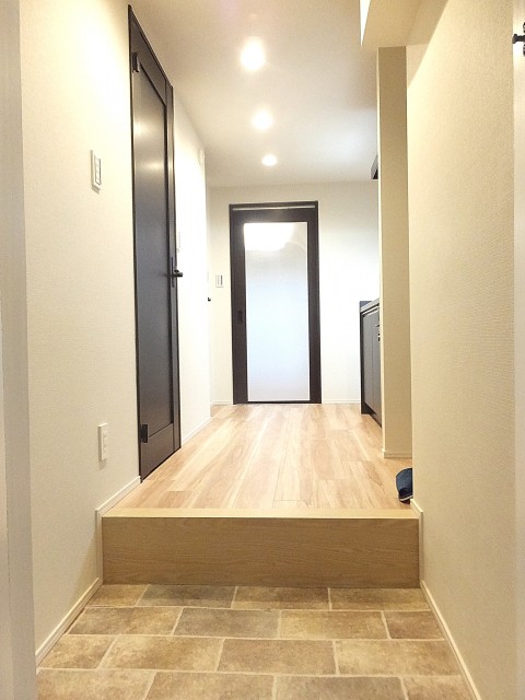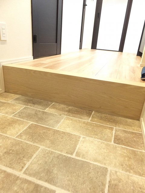 玄関部分は、少し高めの段差になっているので、腰を掛けて靴を履く事も可能◎