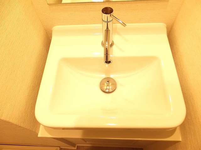上に収納棚があるので、洗剤やタオルの収納スペースとしてお使いいただけます。