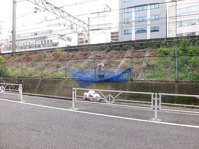 左右はこんな感じ。右側はマンションが立ち並ぶ風景、左側は建物の間から抜けた眺めが見えます。左下は線路が通っています。