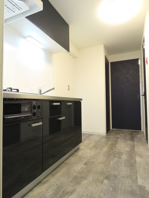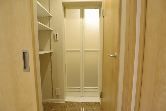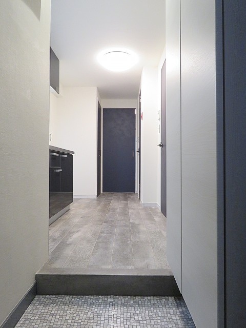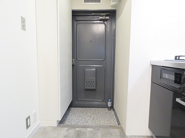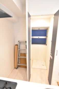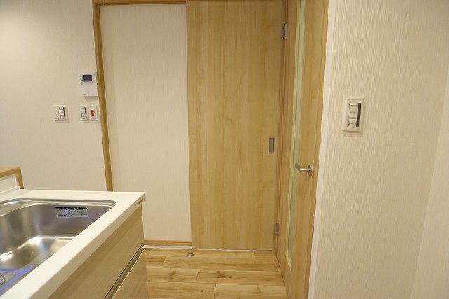 玄関入ると、右手にはキッチンがあり、左手の扉には、洗面室があります。