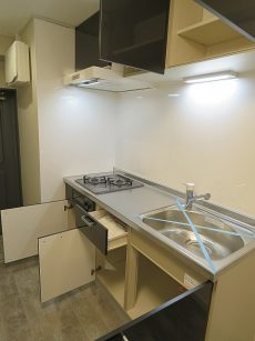 下部にはゴミ箱などがおさまりそうです。カウンター使いでいろいろとまとめられそう!