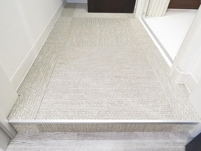 気になって黒板みたいな色のシートをめくってみると、ライトグレーのフロアパネルが貼られていました。