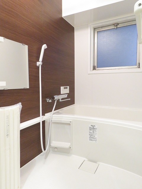 追炊き機能付きバスルームです。ウッド調のパネルがモダンな雰囲気を演出、ゆったりと過ごせそうなバスルームです。浴室換気乾燥機も付いているので、バスルームでお洗濯も干せちゃいます~梅雨の季節も安心ですね。