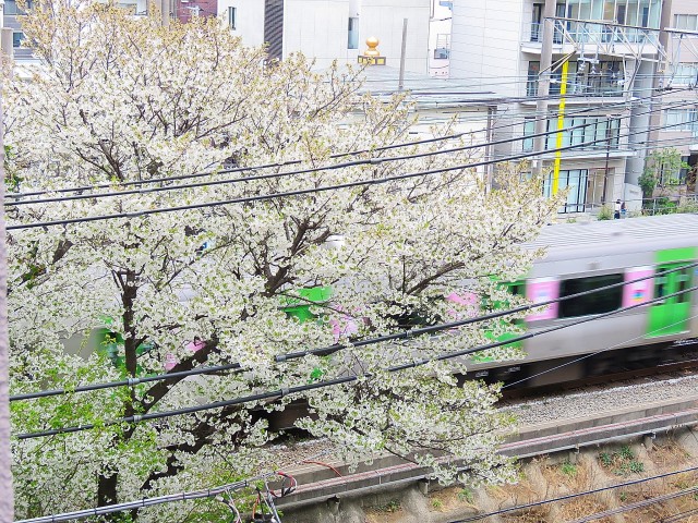 電車が一定間隔で通り過ぎていきますが、走行音は個人的には気になりませんでした。都会ながらも桜が見えたりして和やかな気分になれました。