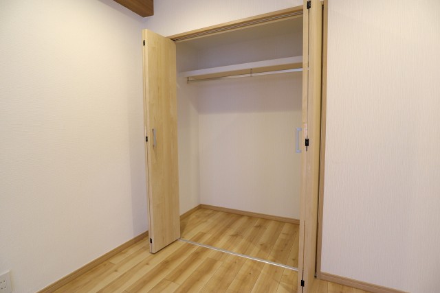 収納はクローゼット。中にある枕棚とハンガーパイプが設置される予定です。そこそこの大きさがありますが、ここが唯一の収納ということを考えるとちょっと心許無い気も・・洋室に収納家具を検討するのもアリかもしれませんね。