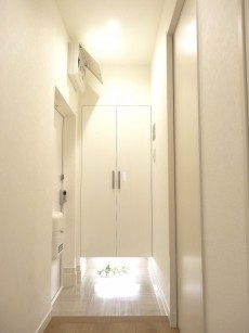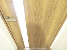 玄関を入ると左側にシューズBOXがつくられています。下からのライトで玄関がパッ