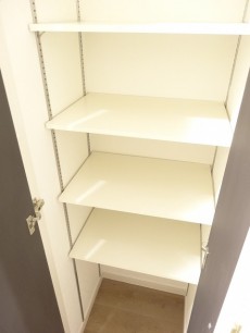 廊下には棚の高さが変えられる収納もつくられています。日用品を入れて置くのに