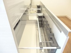キッチン収納はスライド式で物の出し入れもしやすそう。