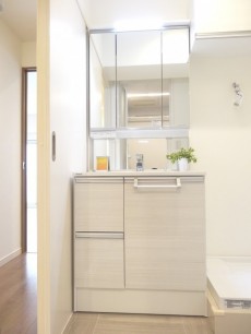 つづいて洗面室です。タオルの収納に便利なリネン庫もありますよ。