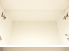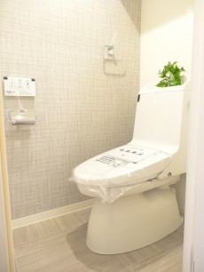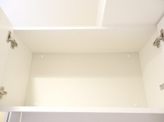 ウォシュレットと吊戸棚付き。 トイレットペーパーのストックもバッチリ収納できます。