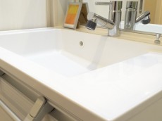 スッキリ片付けられます。洗面ボウル一体型カウンターでお掃除がしやすい