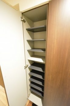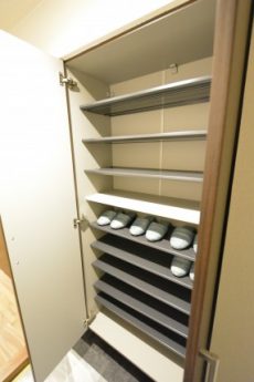 玄関横には容量たっぷりなトールサイズのシューズBOXが設置されています。