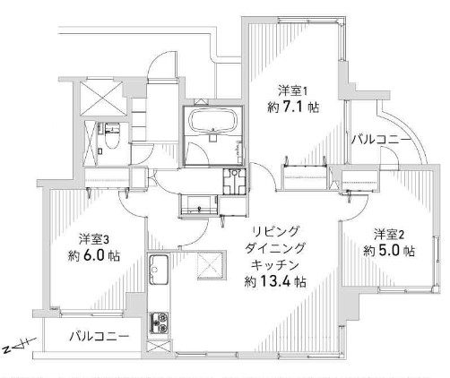 3部屋ある洋室のうち2部屋はLDKを介して行けるようになっています。