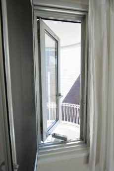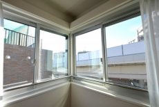 小さい方の窓は横に開くタイプ。横からの風を室内に取り込み易いそうですよ。外は南西向きのバルコニー。