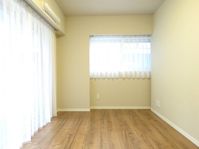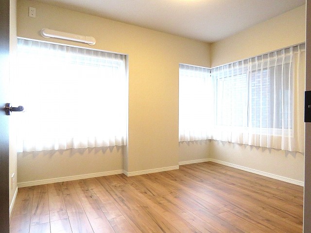こちらは約5帖の洋室。リビングと同じくコーナーが窓になっています。