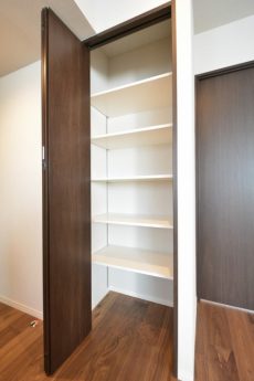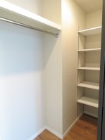 クローゼットは先程のお部屋のものより大きいですね。中が見やすい収納は、無駄な買い物を減らす効果があるそうですよ。