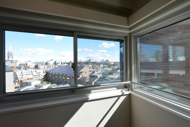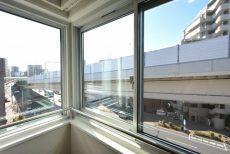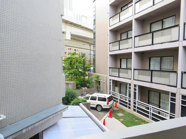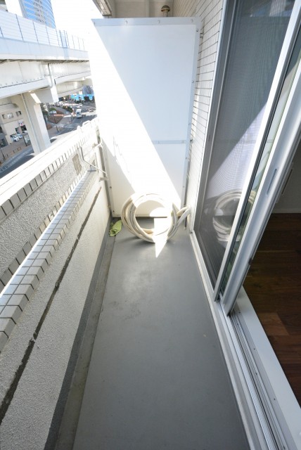 眺望はこんな感じ。マンションとマンションの間から首都高が少し見えています。車の走行音が気になるところですが、お部屋の中にいれば個人的には気になりませんでした。音の感じ方には個人差がございますので、ゼヒご内見の際にチェックされてることをおすすめいたします。