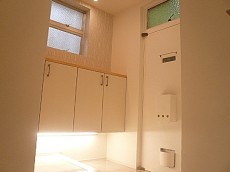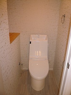 ウォシュレット付きトイレです。玄関同様こちらにもカウンターがあります。インテリアで楽しむも良しですが、後付でカーテンなど付けて収納として活用もできそうですね。