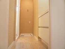 洗濯機置き場です。残念ながら洗剤など置く収納場所はなかったのですが、後付でつけても良いですね。