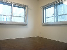 5.8帖の洋室です。2面採光の明るいお部屋です。こちらにもポールハンガー付きのクローゼットがあります。
