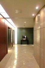 廊下は絨毯敷きの内廊下。ちなみに25階に降りるとオートロック付きの自動ドア