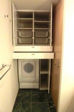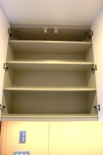 洗濯機置場の上にはリネン庫もあり、タオルや洗剤の収納にご利用いただけます。