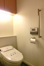 トイレはウォシュレットと吊戸棚つき。玄関横のトイレと同じくタンクレスタイプで