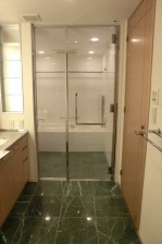洗面室は入口入って右手にバスルーム、正面に洗面化粧台とトイレ、左手に